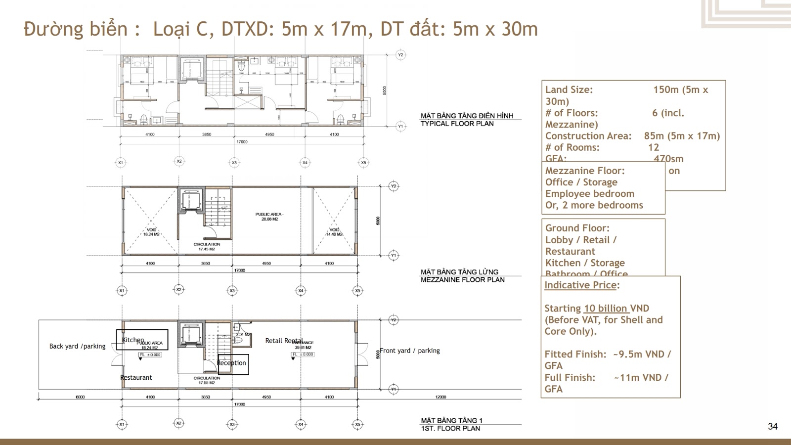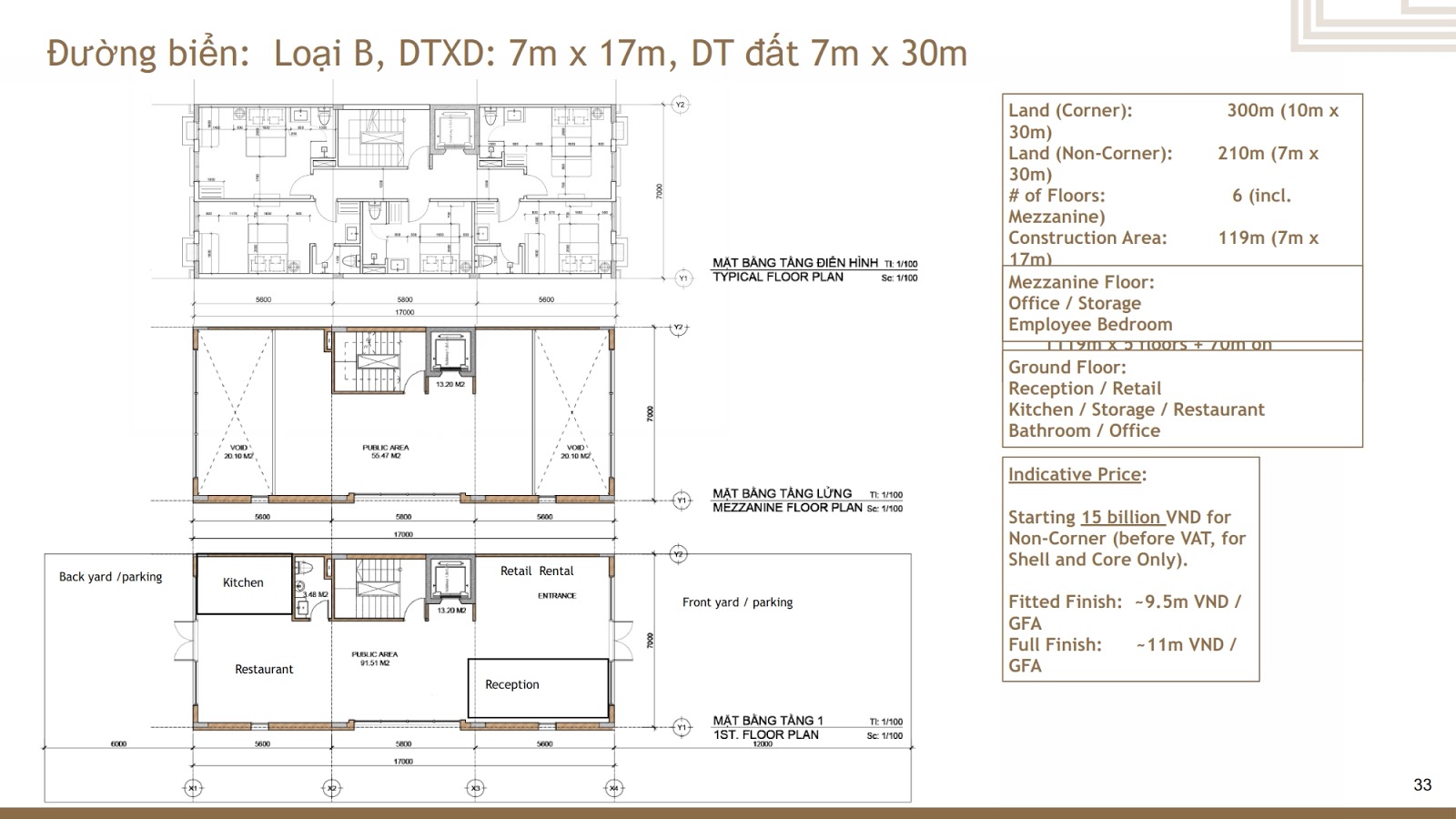 ♦ 34 biệt thự biển diện tích từ 899 đến 1292 m2