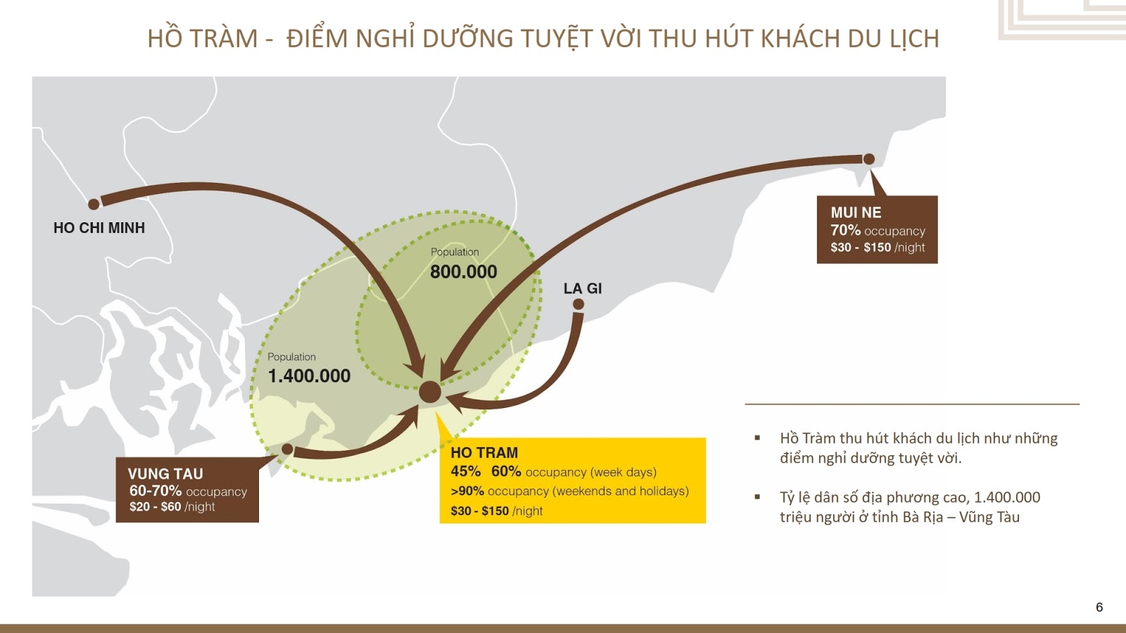 Theo thông tin từ chủ đầu tư, resort 100% mặt tiền biển tại Hồ Tràm từ khi phôi thai đến lúc thành hình, mang tâm huyết lớn nhằm tạo ra một sản phẩm cao cấp ấn tượng, gương mặt mới cho thị trường bất động sản nghỉ dưỡng, không chỉ cho ra sản phẩm đẳng cấp quốc tế, sáng tạo và xuất sắc cả về thẩm mỹ lẫn chất lượng mà còn đề cao nhu cầu người sử dụng.